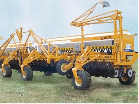 CUERPO SEMBRADOR: individual de “DISCOS DOBLES PLANTADORES” montado en cuerpo con paralelogramos articulados, equipados con resorte de carga para distintos tipos de suelos, logrando una carga constante lo que permite uniformidad en la siembra. Discos plantadores de 16”, 2 ruedas niveladoras de profundidad (de 2 1/2” x 15”), 1 rueda apretadora de semilla semineumática (de 1” x 8”) y 2 ruedas tapadoras