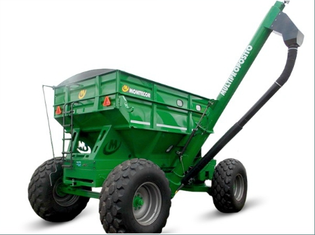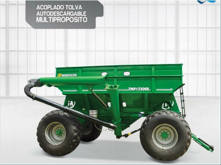Capacidad 17.500Lts. Delantero avantrén con aro a bolitas de acero y trasero caja de gran resistencia. Dimensiones tolva 4.90 mts de largo x 2.35 mts de ancho. Con divisorio, para semilla y fertilizante. Corte de flujo accionado a través de electroembrague. Provisto de kit para carga de sembradoras y kit para ser utilizada como autodescargable.