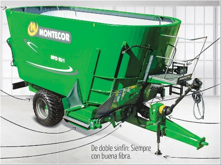 Capacidad 25m3 (volumen caja mezcladora). Eje simple 4 ruedas (para cubiertas alta flotación 400-55-22,5 16 Telas y 500-45-22,5 16 Telas. Sistema de corte de rollo y mezclado a través de dos sinfines verticales c/10 cuchillas de corte cada uno. Accionado con caja reductora a engranajes con sistema planetario de reducción en baño de aceite a través de una caja de velocidades.