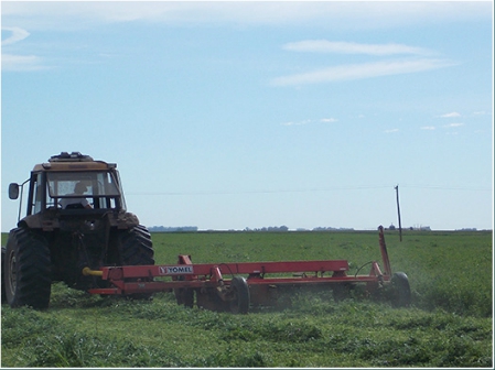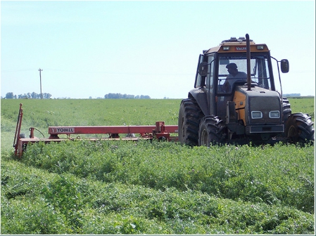 Cortahileradora-desmalezadora de forrajes y malezas, de dos hélices, con cuchillas oscilantes rotativas y paletas hileradoras, con rastrillo contenedor de malezas. De tiro lateral.Transmisión mediante correa plana, para ser accionada por toma de fuerza a 540 rpm, control remoto desde el tractor para regular altura de corte desde 0 a 0.45 m., con cilindros y mangueras.