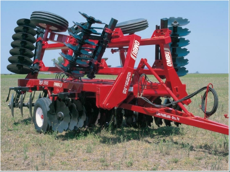 Sistema Hidráulico: cuenta con cuatro cilindros compensados distribuidos en el panel central, las alas y el control de profundidad. Dos cilindros más son los encargados de poner a la rastra en posición de transporte